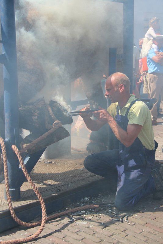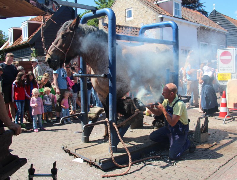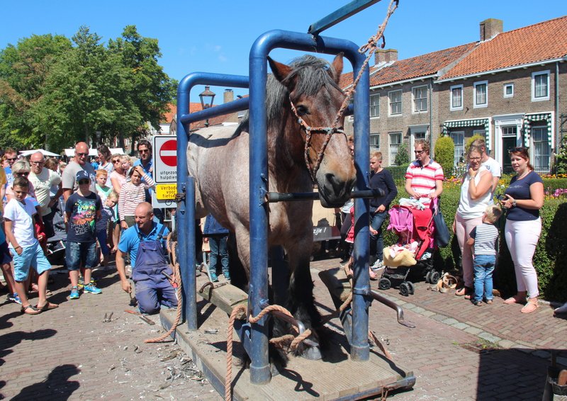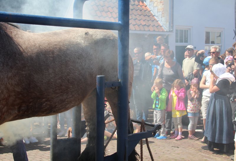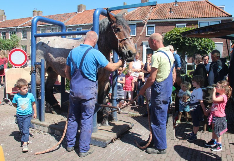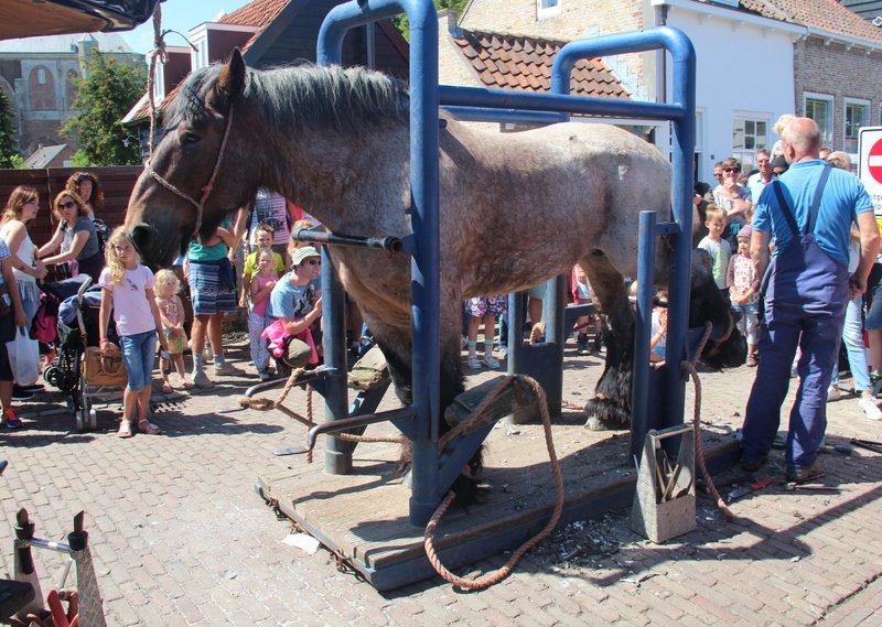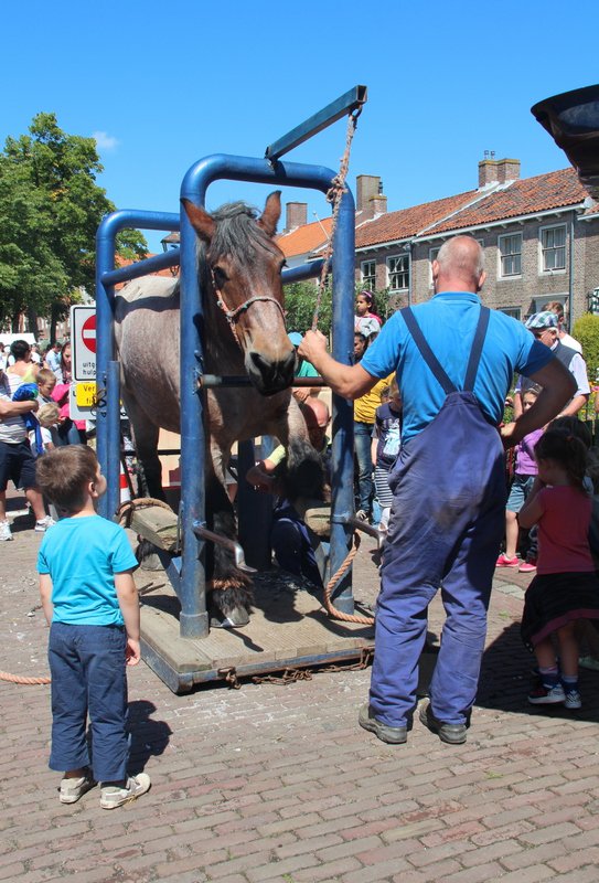 Op dinsdag 4 augustus 2015, een zonovergoten dag, liet Adri 2 van z'n paarden voorzien van nieuwe hoefijzers door de hoefsmeden van den Broeke op de historische markt in het mooie stadje Veere.