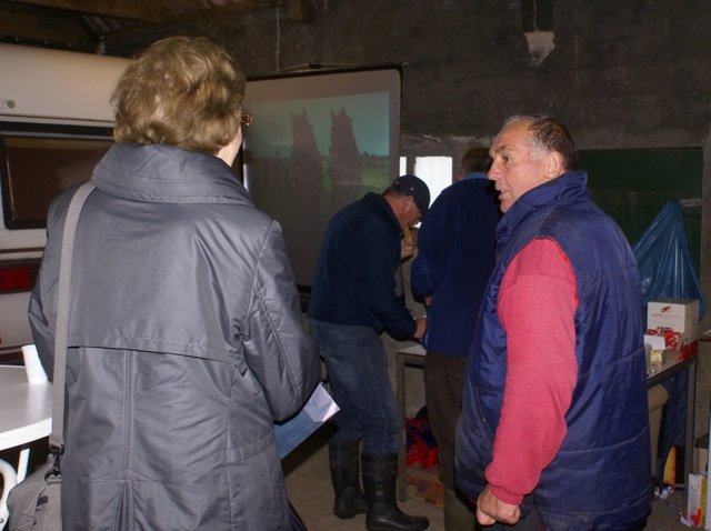 Gelukkig was er ook een binnenprogramma in de schuur, waar men een foto- en filmpresentatie van de activiteiten van Stal Serooskerke kon bekijken en Adri uitleg kon geven over de verschillende werkzaamheden onder het genot van een kopje koffie.