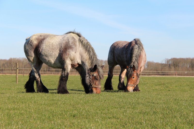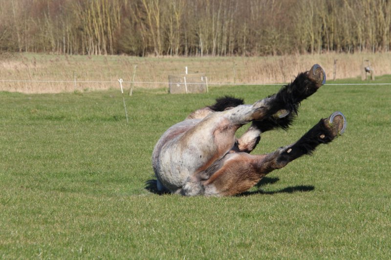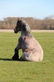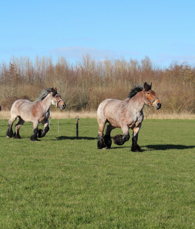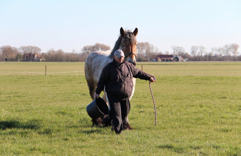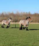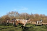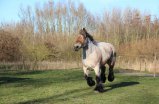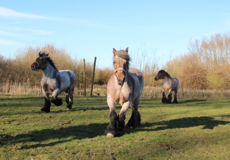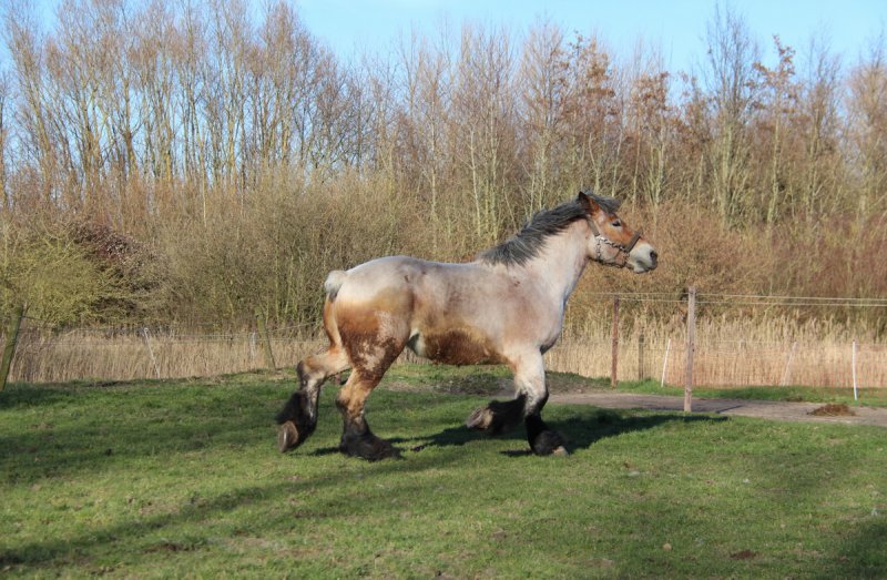 Half maart mogen de trekpaarden weer voor een poosje de wei in. Zeer enthousiast rennen ze de hele wei door en spelen ze met elkaar. Een vrolijk gezicht, de lente komt eraan.