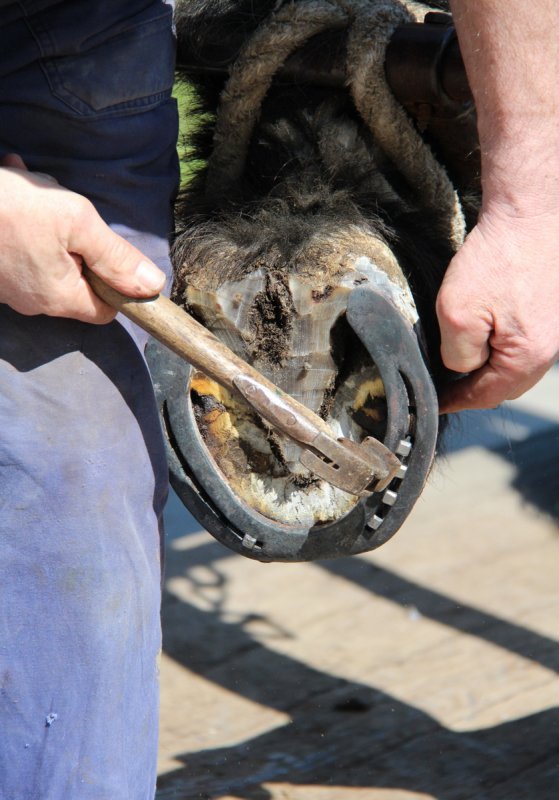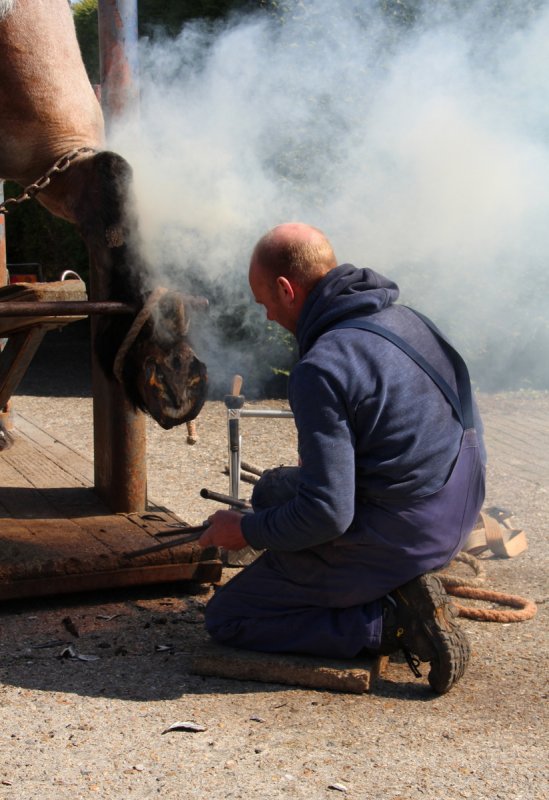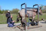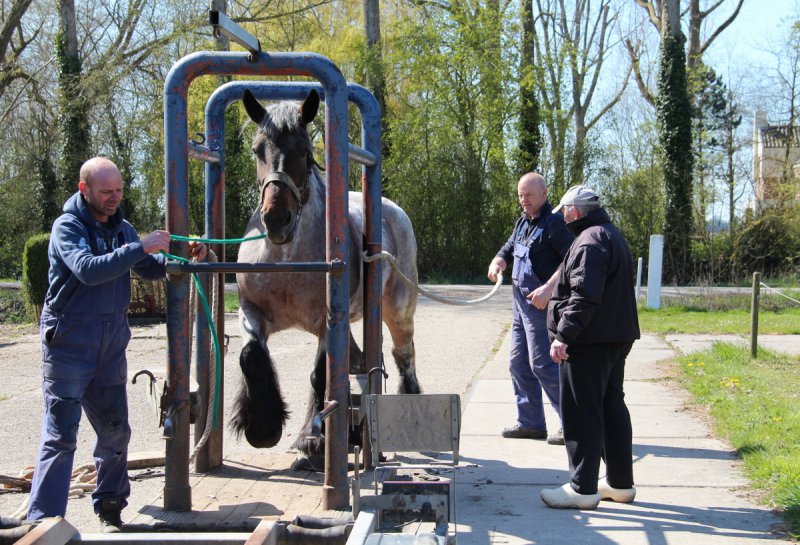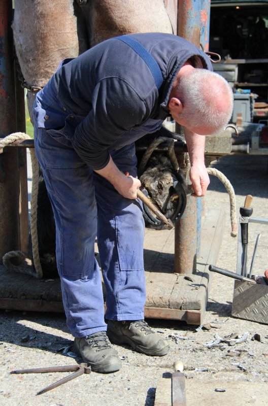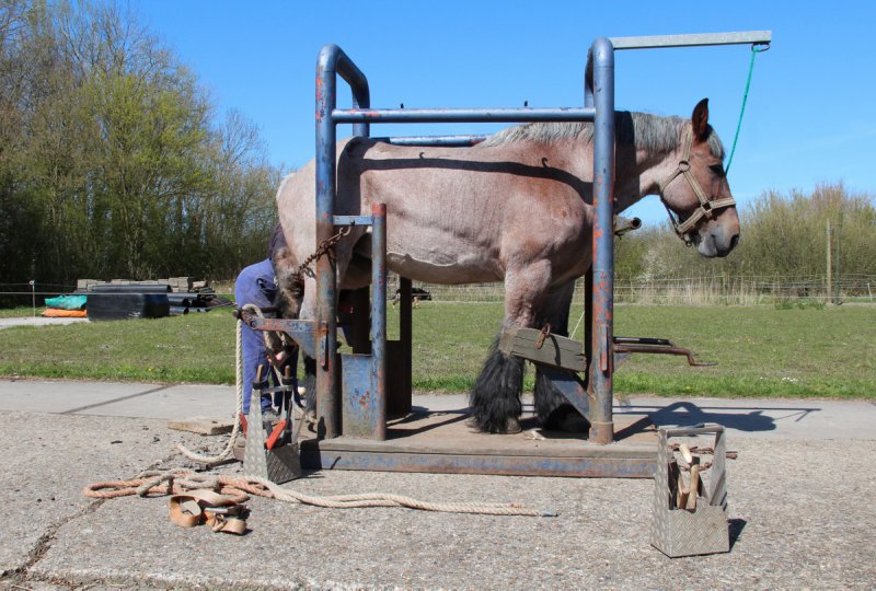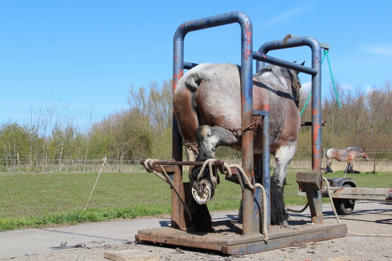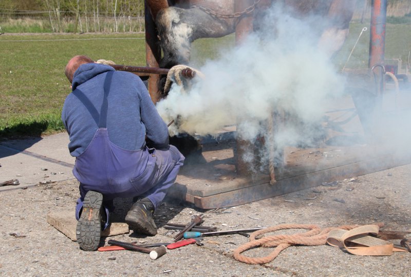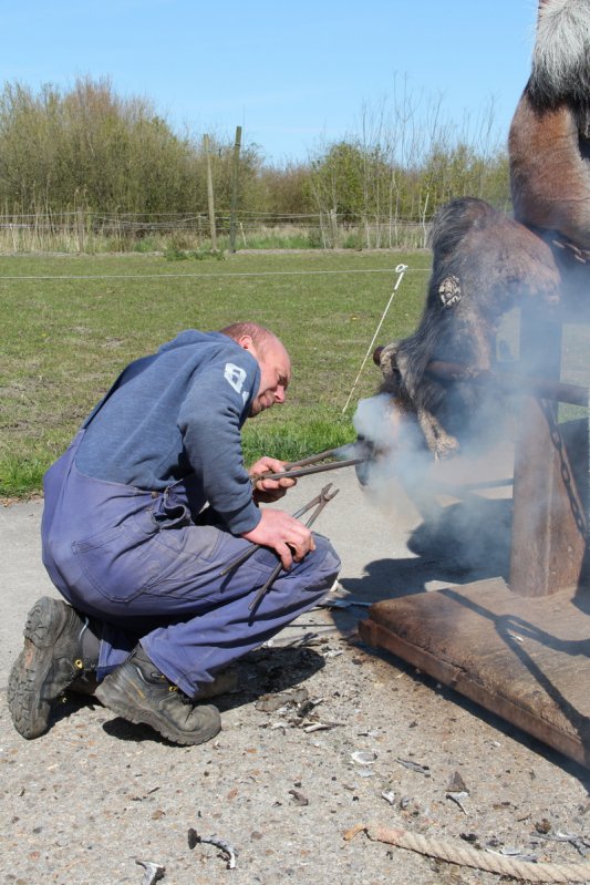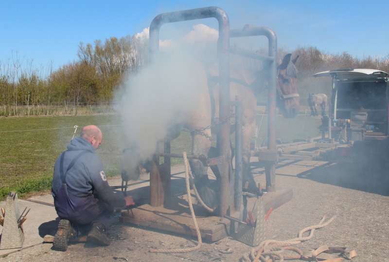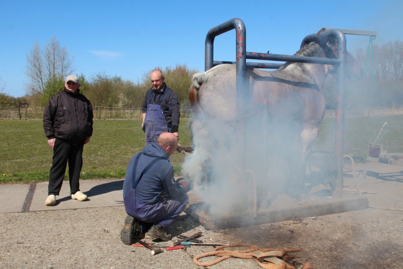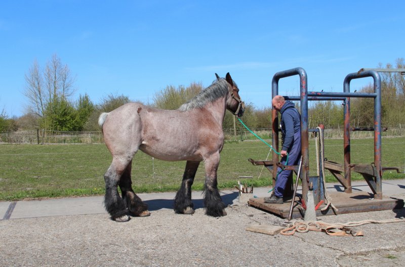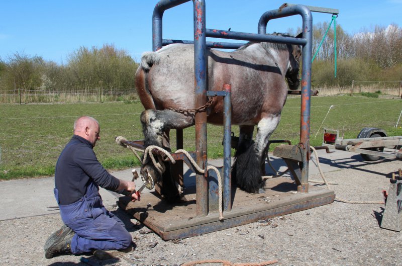 Hoefsmid vd Broeke kwam in april 2021 langs om Femke en Arletta van nieuwe hoefijzers te voorzien.