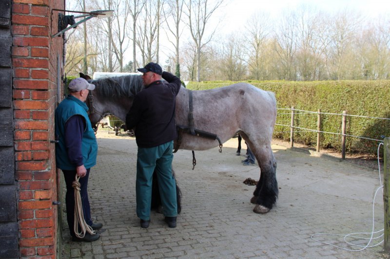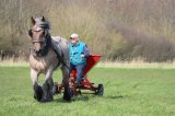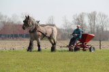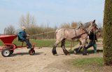 Adri reed met Femke het weiland op, ze had er zin in, daarom moest Adri de teugels goed vast houden.